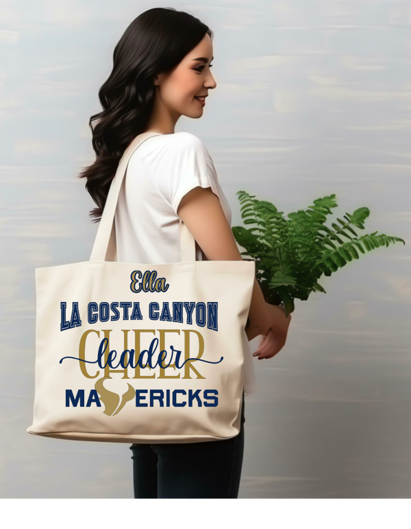 Your logo or text on a large, over-the-shoulder double strap cream canvas tote bag. Any customization by request. All vinyl colors available. Please include your customization request in order notes. Bag is 18.5" x 16.5"