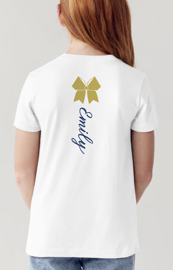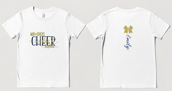 Your custom team, logo, and colors on any color cotton t-shirt w/ athlete's name on back. Please provide customization request and athelete's name in order notes. All t-shirt and vinyl colors available.